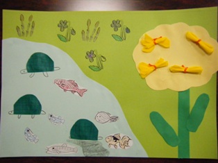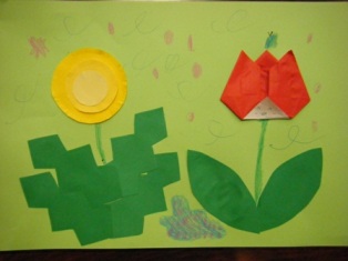 けいちつ。画用紙に切り込みがあり、土の中から出てくるようになっています。