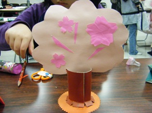 桜の木のペンたて。桜の花びら、かわいく出来ました。
